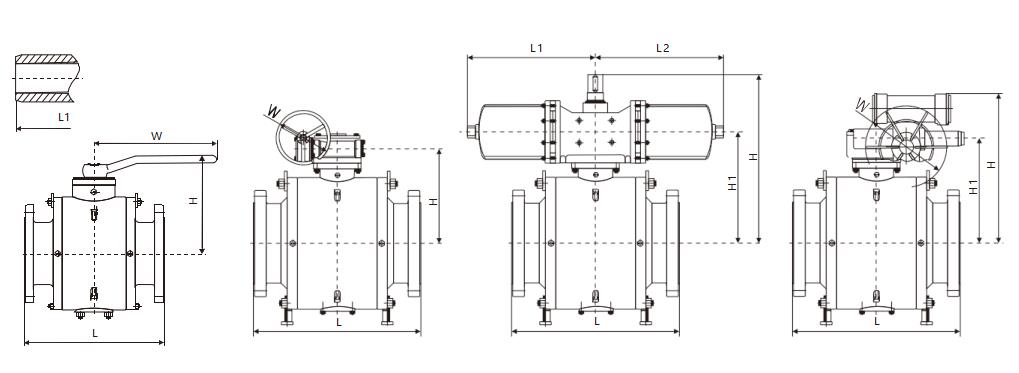 Q341F/H/W/Y API Fixed Ball Valve main dimensions