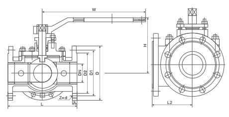 Q644F Pneumatic Three-way Ball Valve main dimensions