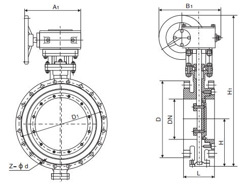 1, the valve adopts three eccentric sealing structure, the valve seat and disc almost no wear, with the more the more tight sealing function.