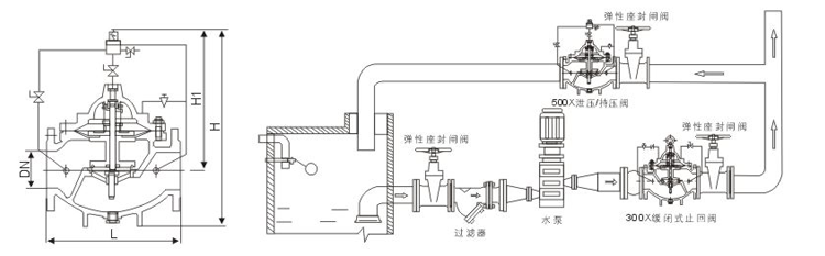 500X泄壓閥利用水力自力控制,不需要其它裝置和能源,保養簡便,一閥多用。本系列閥門產品廣泛用于高層建筑、生活區等供水管網系統及城市供水工程。